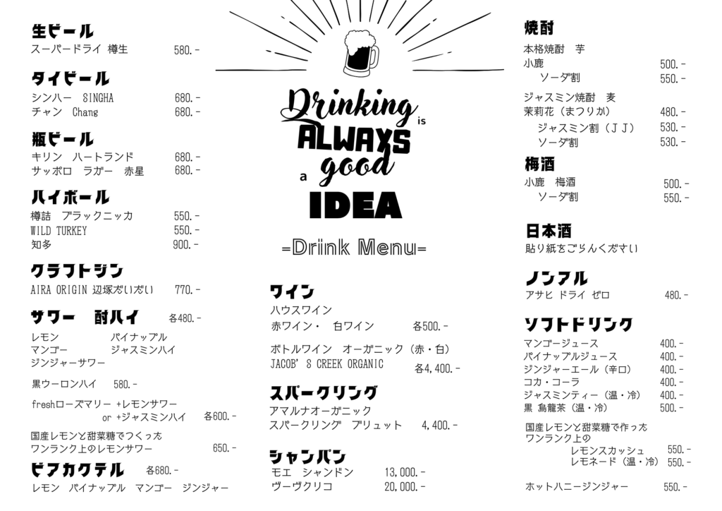 別途、ドリンクのご注文をお願いしています。(席料・チャージはいただいておりません)
